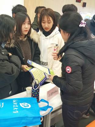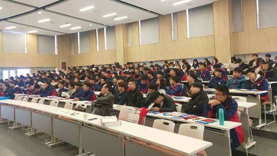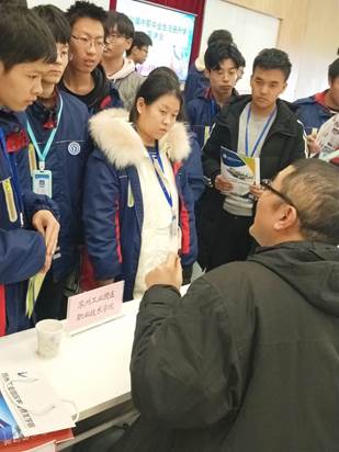 院校招就部门的负责人,通过PPT、视频、海报、宣传册等方式向大家介绍了学校概况、课程设置、学制年限、特色专业、毕业生升学就业状况等情况,学生们认真聆听。